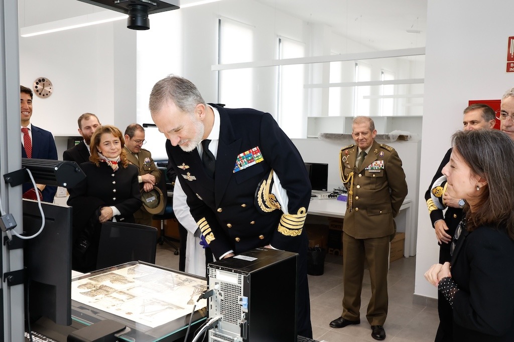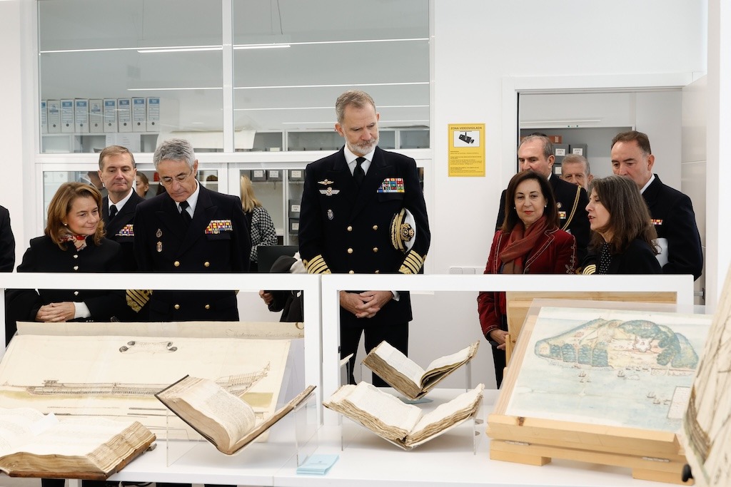 La sede visitada hoy por Su Majestad se ha convertido en el principal depósito documental de la Armada. Con más de 14 kilómetros lineales de fondos, ampliables a 28 kilómetros en 2026 y hasta 42 en fases posteriores, su diseño responde a las necesidades de un archivo 4.0, preparado para la transformación digital y dotado de bases de datos integradas que facilitan el trabajo archivístico y el acceso de investigadores y especialistas.