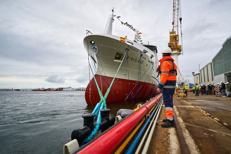 Astilleros Ría de Vigo, del Grupo Armón en Vigo, ha realizado hoy la botadura de la construcción número CR01 de la histórica factoría heredera de Astilleros Hijos de J. Barreras, que corresponde al buque pesquero congelador “Hadassa Bay”, construido por encargo de South Atlantic Squid, sociedad formada por Copemar y Beauchene Fishing.
