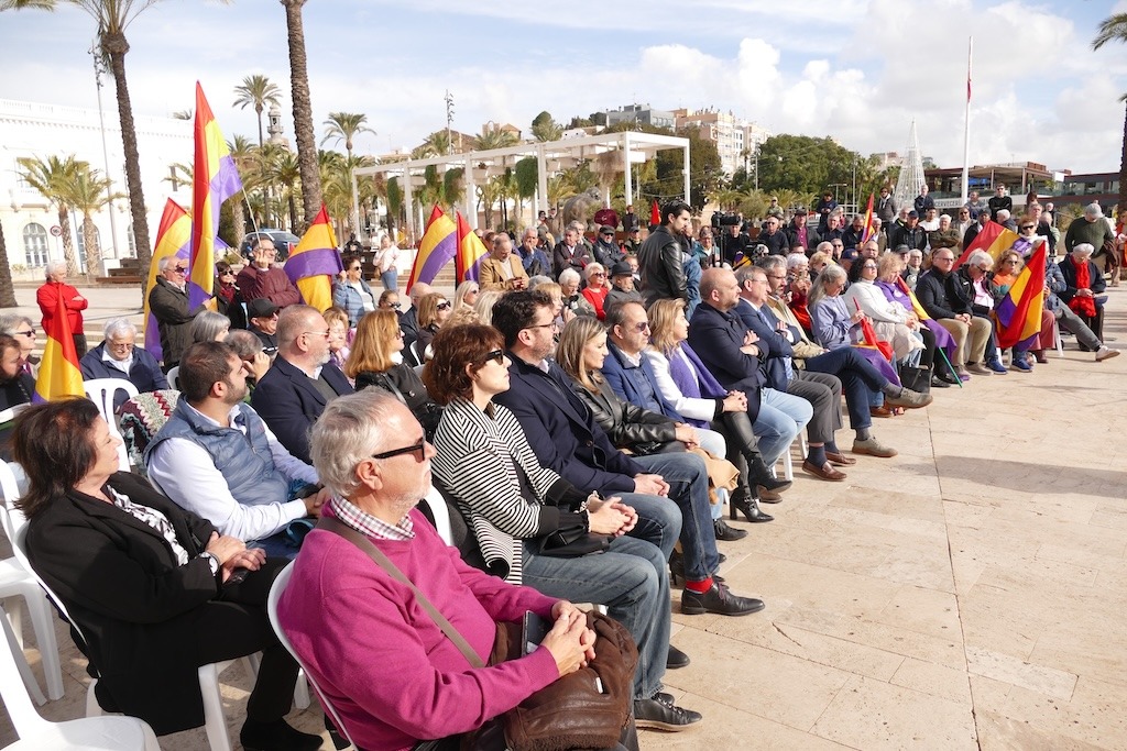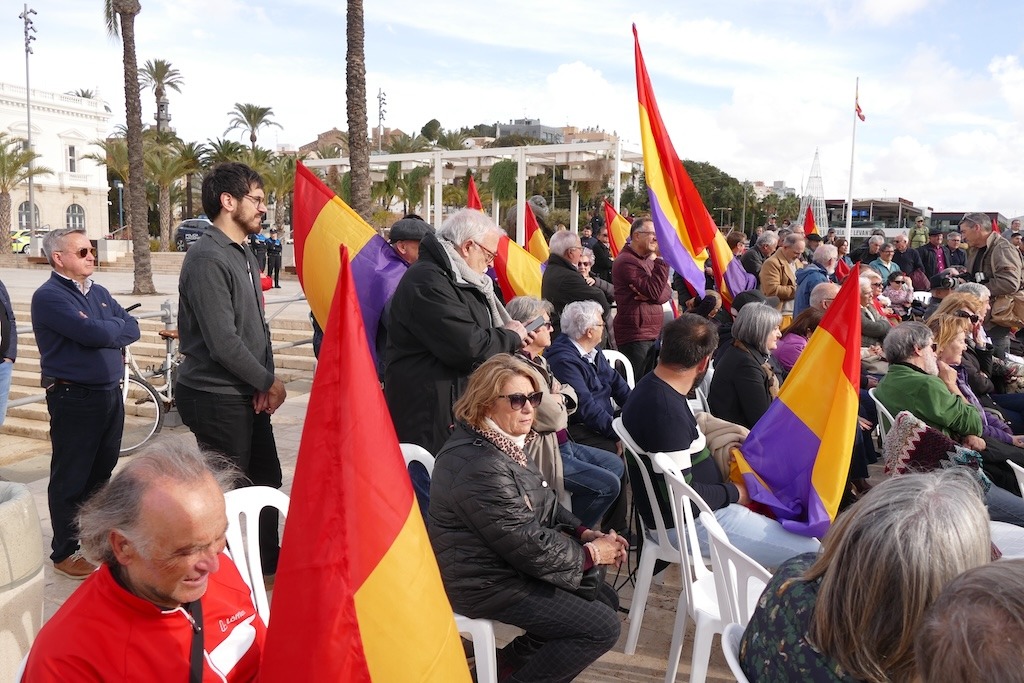 El acto, presidido por el delegado del Gobierno en la Región de Murcia, Francisco Lucas Ayala, y el secretario de Estado de Memoria Democrática, Francisco Martínez Vázquez, y que ha congregado a varios cientos de personas, muchos de ellos ondeando al viento banderas republicanas, ha consistido en descubrir una placa conmemorativa de aquel acontecimiento histórico, como acto final a varios discursos pronunciados por las dos autoridades citadas y por algunos hijos de aquellos deportados que vivieron el drama del exilio en primera persona, algunos de los cuales superan la barrera de los 90 años.