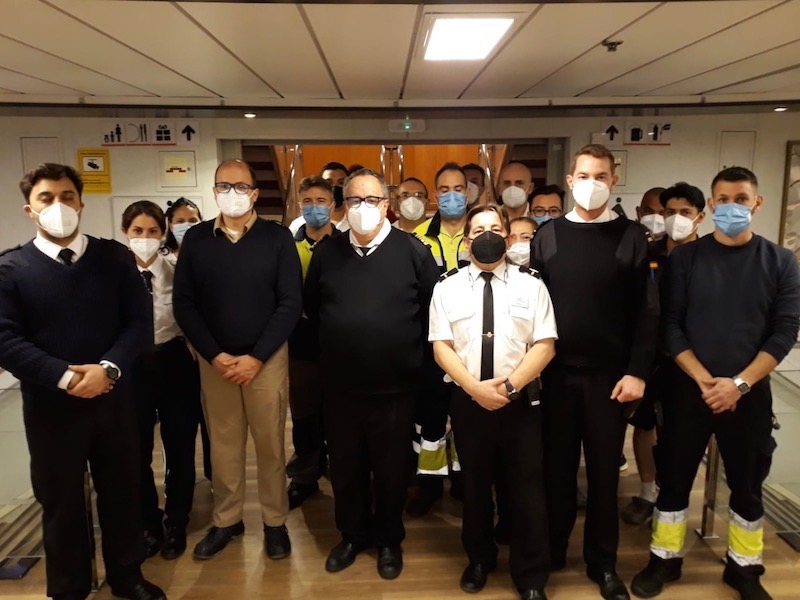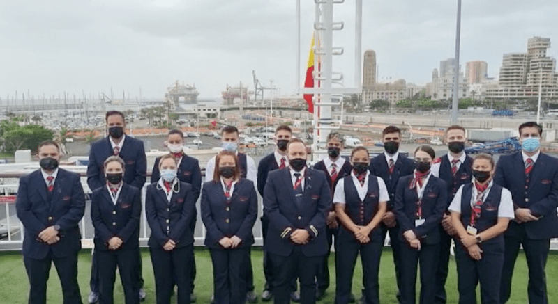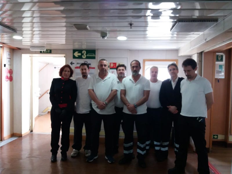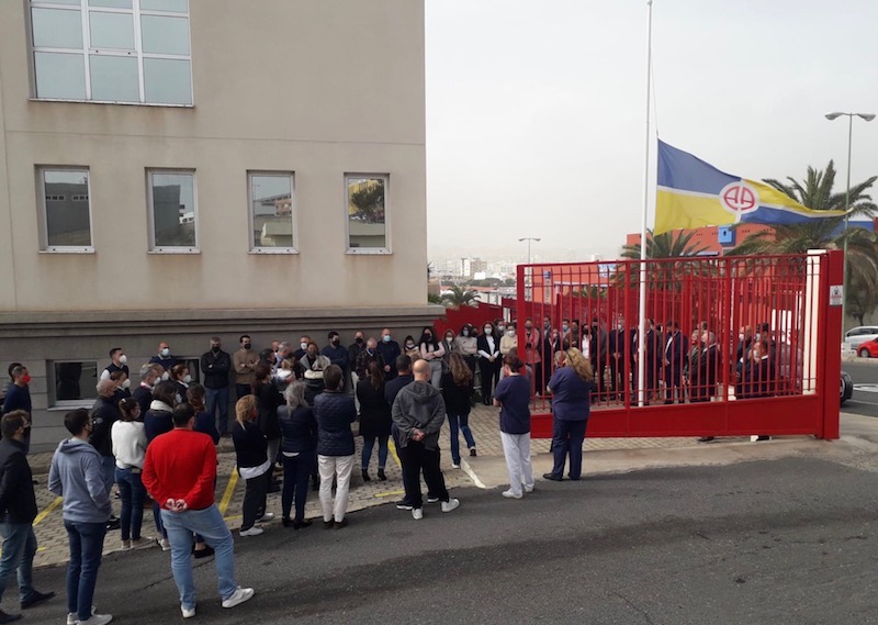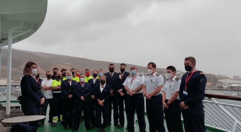 En la sede central en Las Palmas de Gran Canaria se ha concentrado todo el personal en torno al equipo directivo y el gallardete arriado a media asta, en un ambiente de gran pesar. En los buques atracados en puerto las tripulaciones se han reunido junto a sus capitanes y sobrecargos.