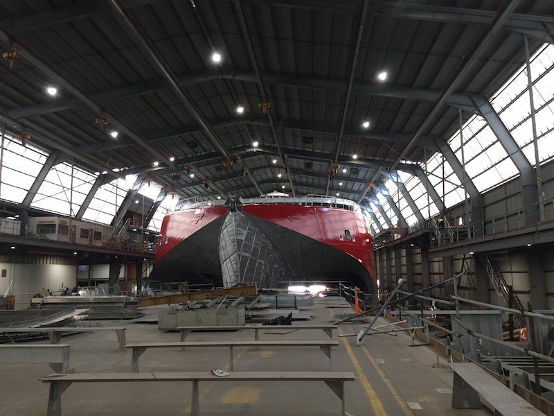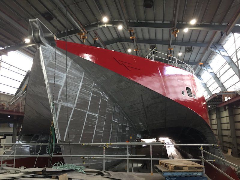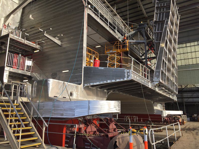 Como estaba previsto, el astillero Incat puso a flote ayer sábado, 15 de junio, a las 17 horas de Australia, el catamarán “Volcán de Tagoro”, que será estrenado a partir de agosto próximo en la línea Palma-Ibiza-Gandia. El viaje de posicionamiento será vía canal de Panamá, por lo que hará escala técnica en Las Palmas de Gran Canaria antes de continuar a Palma de Mallorca.