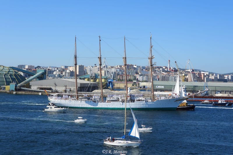 El puerto de A Coruña es el último de su actual crucero de instrucción, previo a su llegada al muelle de la Escuela Naval Militar, en Marín, donde el próximo 16 de julio se procederá a la entrega de los despachos a los nuevos oficiales de la Armada e Infantería de Marina.