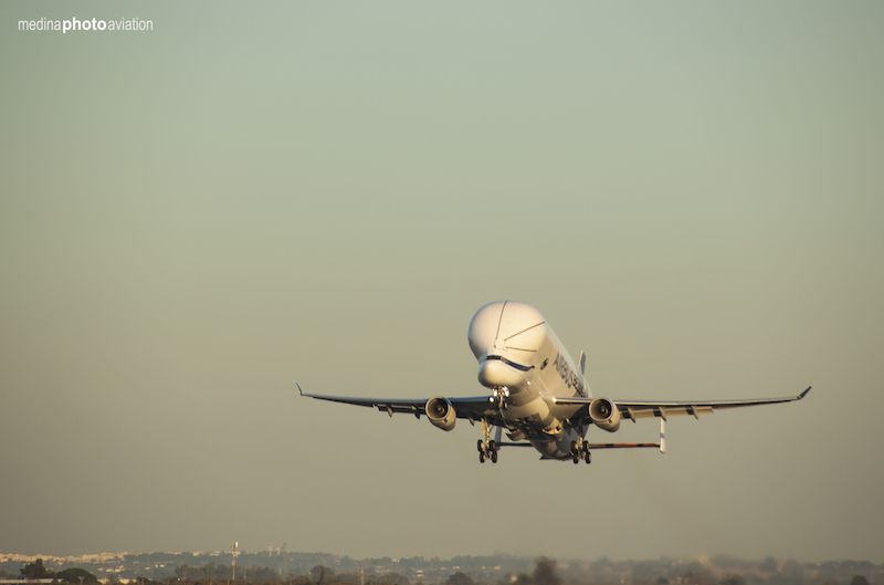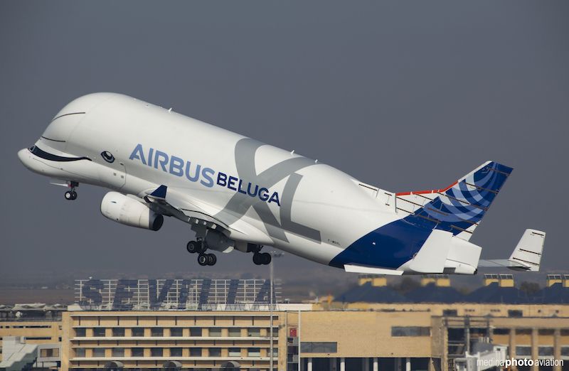 El primer avión Beluga XL de Airbus estuvo durante seis días en el aeropuerto de Sevilla, del 4 al 10 de febrero, realizando pruebas de ruido, informa Manuel Rodríguez Medina en el blog vadeaviones.com, quien es autor, asimismo, de las fotos que acompañan. Se trata de un hito en la corta vida aeronáutica de este gigante y del aeropuerto sevillano, en el que aterrizó el día de su llegada después de varias pasadas a baja altura sobre la base aérea de Morón.