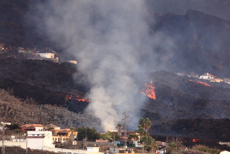 La tercera colada discurre con mucha velocidad ya que aporta la mayor parte del flujo lávico. Un brazo ha cruzado diagonalmente el Callejón de La Gata y podría moverse a zonas no evacuadas previamente.