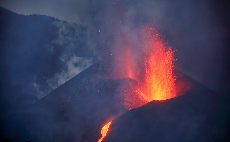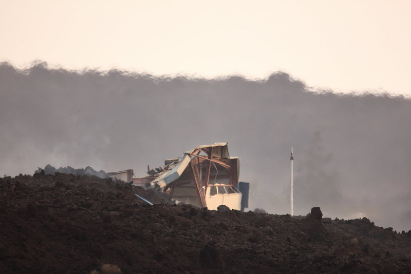 La superficie afectada por la lava supera 612 hectáreas, que son 21 hectáreas más que ayer. La altura de columna de cenizas y gases medida hoy, así como su dispersión, alcanza 3.500 m.