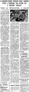 Hubo suerte, pues a consecuencia de la inercia del choque, el buque español quedó al costado del buque griego y los quince tripulantes del “Virgen de Valme” y dos acompañantes (María Rosario Gutiérrez Barderci y Rafael Suárez Gutiérrez, esposa e hijo del capitán), pudieron ponerse a salvo a bordo del “Makalla”.