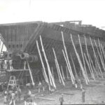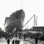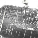 En plena guerra mundial, con la industria naval española sufriendo vicisitudes de todo tipo en cuanto al abastecimiento de materiales y restricciones eléctricas, así como las penurias derivadas de la reciente guerra civil, la quilla del nuevo buque, construcción número 72 del astillero de Matagorda, se colocó el 14 de diciembre de 1942 y hasta su botadura transcurrirían casi cuatro años. El 4 de abril de 1946 resbaló por la grada con el ceremonial acostumbrado y el 3 de julio de 1947 se procedió a su entrega oficial.