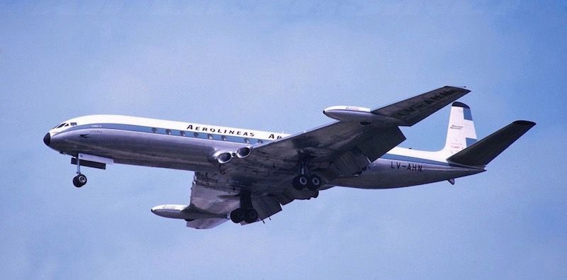 Aerolíneas Argentinas fue una de las pocas compañías aéreas fuera del Reino Unido que operaron el novedoso avión británico Comet IV, del que llegó a tener una flota de siete unidades. El primero de ellos, cuya compra fue autorizada por el Gobierno en tiempos del presidente Arturo Frondizi, llegó a Argentina el 2 de marzo de 1959 tripulado por el comandante Aníbal Ernesto Aguirre, después de 16 horas de vuelo con escalas en Dakar y Recife.