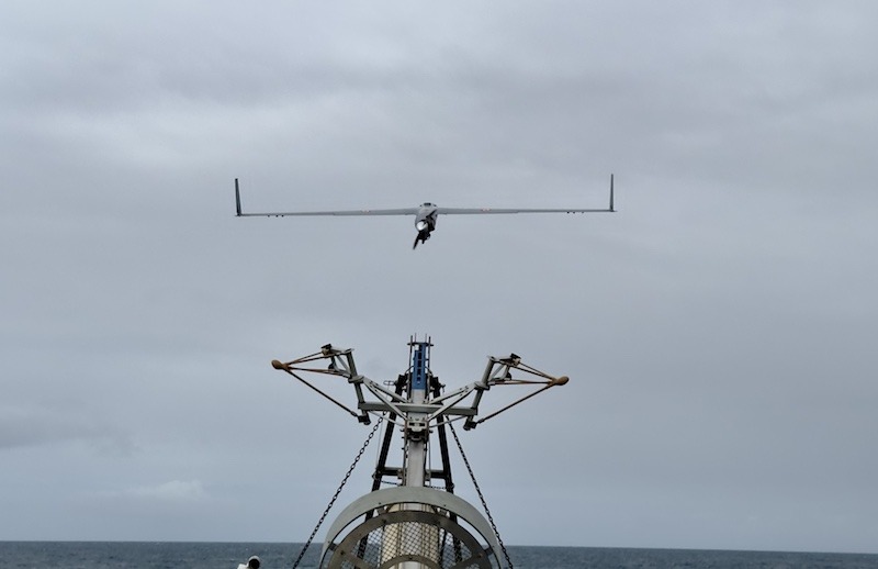 La fragata “Navarra” (F 85) tiene embarcada una aeronave no tripulada UAV “Scan Eagle”, que le permite incrementar considerablemente su radio de patrulla, pues tiene un alcance de 100 kilómetros y una autonomía superior a 20 horas, informa el Estado Mayor de la Defensa en su cuenta de twitter.