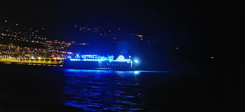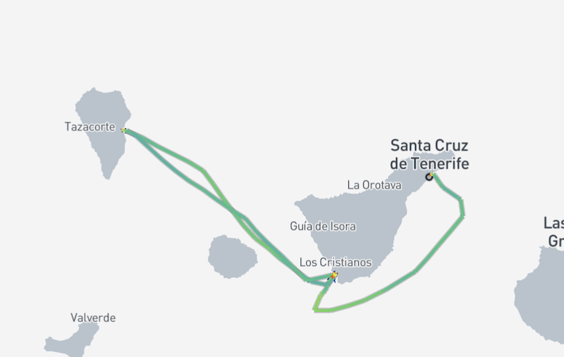 En su primera rotación en la línea Los Cristianos-La Palma, el ferry “Volcán de Tauce” salió con retraso y llegó a Santa Cruz de La Palma casi a medianoche. De acuerdo con el nuevo horario, a las tres de la madrugada inició el viaje de retorno y tras la descarga en el puerto de referencia, se encuentra fondeado en la bahía de Los Cristianos, como lo hacía también el ferry “Volcán de Taburiente”, a la espera del siguiente servicio.
