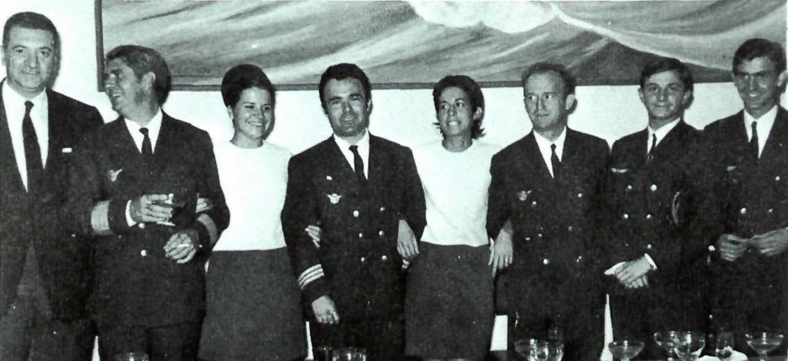 En los años de la gran Iberia, aquella compañía extraordinaria que tanto prestigio dio a la aviación española fuera y dentro de nuestro país, uno de sus aviones de la flota Douglas DC-9 recibió el nombre de “Ciudad de Santa Cruz de La Palma”. El 16 de julio de 1970 aterrizó por primera vez en el nuevo aeropuerto de la isla de La Palma, del que ostentaba el nombre de su capital. Venía al mando del comandante Calderón Cabañas, a quien vemos con su tripulación y el presidente del Cabildo Insular, Manuel Pérez Acosta.