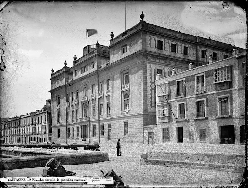 En el año 1731, reinando en España S.M. el rey Felipe V, darían comienzo las obras de construcción del Arsenal de Cartagena, que habrían de durar hasta poco más de 50 años, pues no se darían por concluidas hasta 1782, ya bajo el reinado de Carlos III. Poco tiempo después de darse por terminada tan magna obra, en 1788, daría comienzo la construcción de otro edificio singular de Cartagena, el que ubicado en la Muralla del Mar, se conoce como de “Servicios Generales”, inmueble que alberga a día de hoy diversas dependencias departamentales, aunque su uso primigenio fuera el de “Cuartel Escuela de Caballeros Guardiamarinas”.