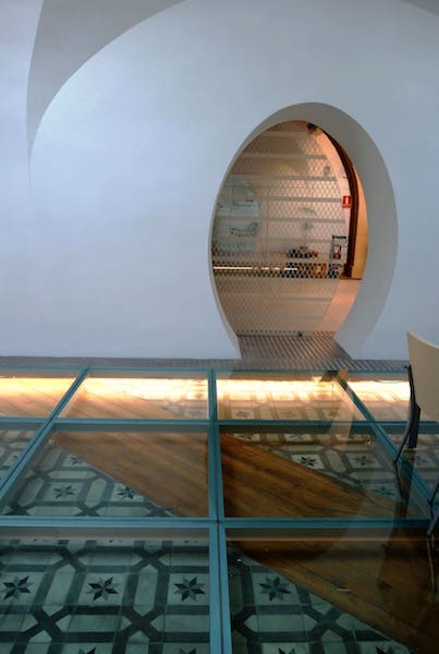 Una vez terminada la rehabilitación del espacio, el suelo original formado por losas de las llamadas “hidráulicas” ha quedado al descubierto, así como las “calles” con suelo de madera sobre la que se realizaban las clases de esgrima correspondientes, quedando todo ello restaurado, a la vista y protegido, pues sobre ese suelo original se colocó uno de cristal, que permite pasar y pisar unos centímetros por encima del primitivo, que queda a la vista.
