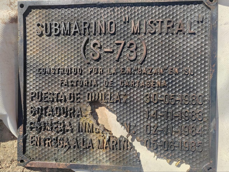 Asimismo, se han retirado dos placas-metopas que también son importantes para el proyecto: una contiene los principales hitos de la construcción del submarino y otra el astillero y año de entrega.