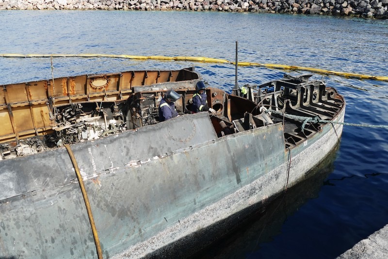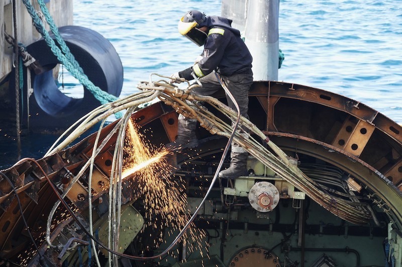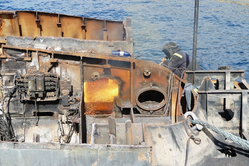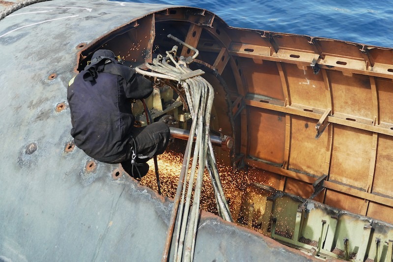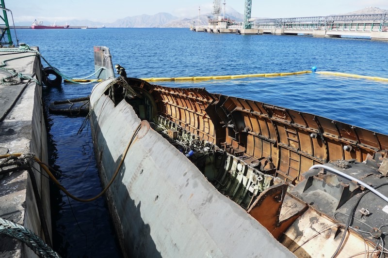 Además de la vela del submarino “Mistral” (S-73), que se encuentra en avanzado estado de desguace en el puerto exterior de Cartagena, la empresa chatarrera Hermanos Inglés ha preservado también dos trozos de la cubierta, que estaban a proa y popa de la citada vela, con la intención de que formen parte de la ubicación final del monumento estático que promueve la Asociación Cartagena Ciudad de los Submarinos, asesorada por el oficial submarinista retirado e historiador naval Diego Quevedo Carmona.