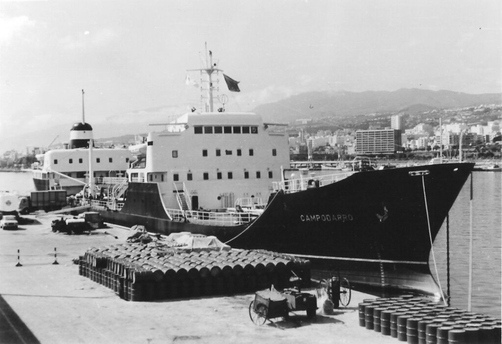 Por espacio de 26 años enarboló la contraseña de CAMPSA el buque petrolero “Campodarro”, perteneciente a una serie de barcos que fueron los últimos de la compañía con puente al centro. Tuvimos ocasión de verlo en algunas ocasiones en los puertos de Santa Cruz de Tenerife y Málaga y, cosas del destino, volvimos a encontrarlo en su segunda etapa cuando ostentaba el nombre de “Ocean Knight”.
