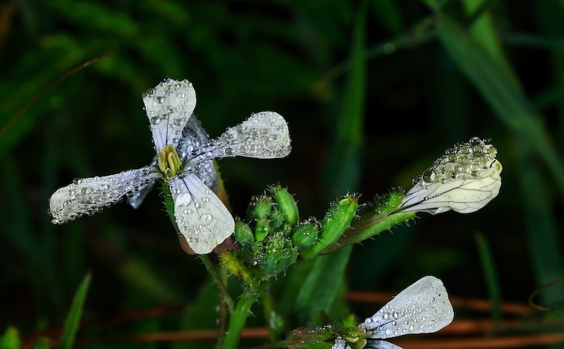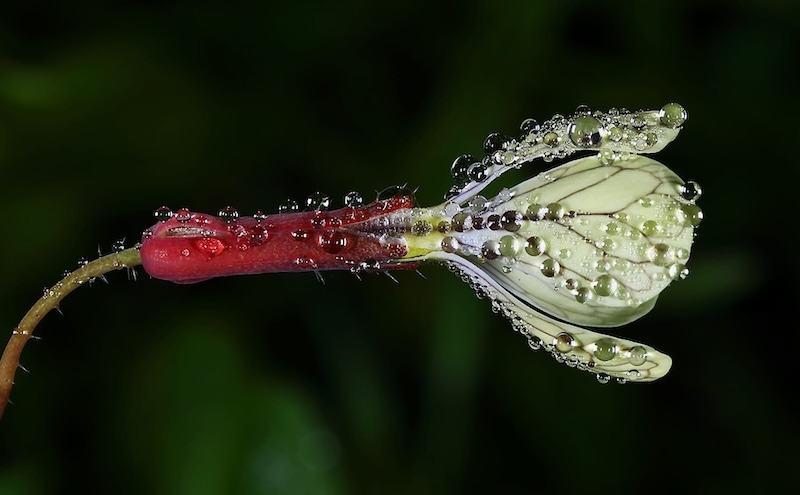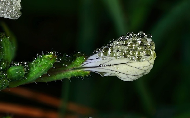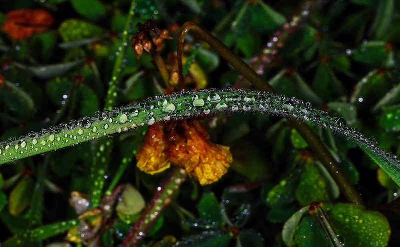 El fotógrafo palmero Facundo Cabrera (Los Sauces, 1956) nos ofrece esta atractiva e interesante secuencia de las gotas del rocío al amanecer, en este caso pertenecientes a la naturaleza de La Palma, en el inicio de una nueva faceta de su quehacer artístico e interés por la microfotografía. Una evolución, en cierto modo, que es continuidad de su anterior etapa con las semillas y los piroclastos, de las que ha hecho algunas exposiciones singulares con sonado éxito.