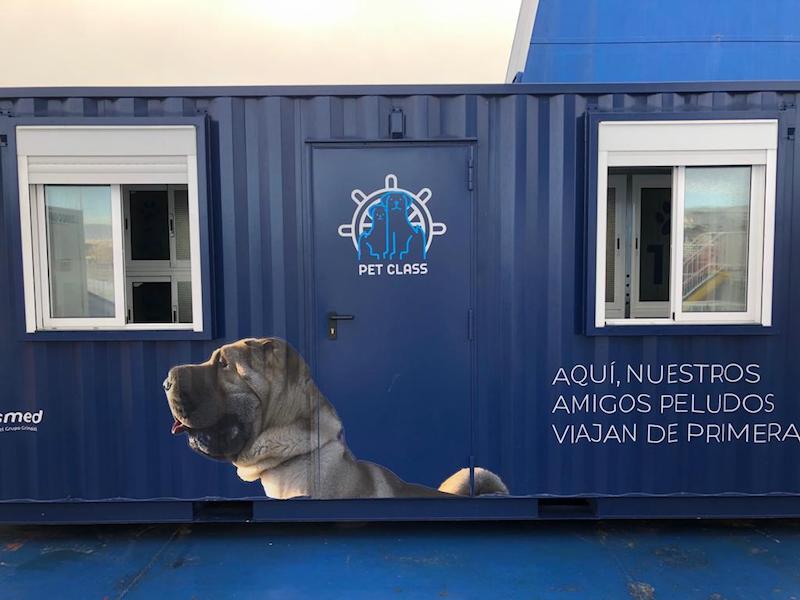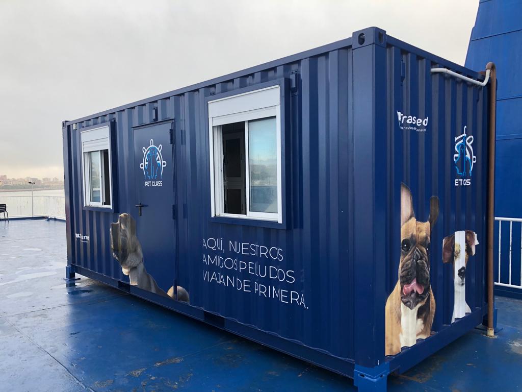 Las perreras se han convertido en espacios distinguidos que combinan comodidades no solo para los animales, sino también para la confiabilidad de sus dueños. Es el caso de Trasmed, la compañía española del Grupo Grimaldi. Cada buque dispone de contenedores convenientemente habilitados y dispuestos sobre cubierta, pintados con el color azul corporativo, que indican que se trata de un espacio reservado para las mascotas.