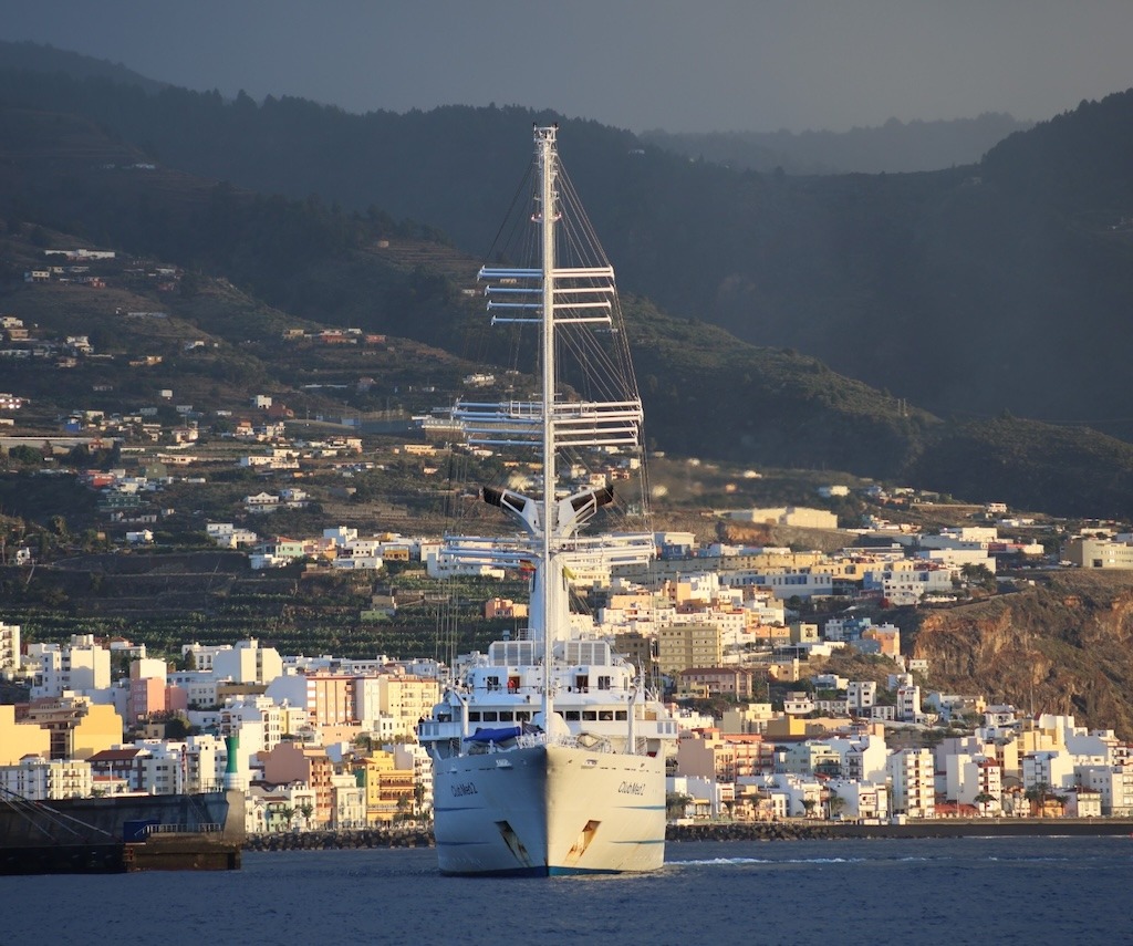 Services et Transports Cruise Line (Club Mediterranée) encargó la construcción de un segundo buque llamado “Club Med 2”, que entró en servicio en septiembre de 1992 y que esta mañana ha llegado al puerto de Santa Cruz de La Palma, cuya entrada ha captado nuestro colaborador Benito Manuel Rodríguez.