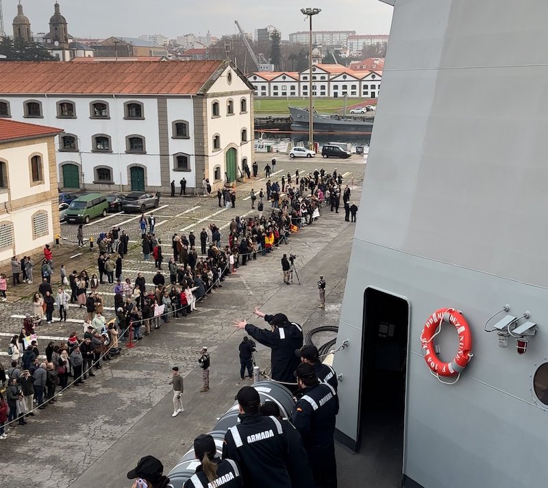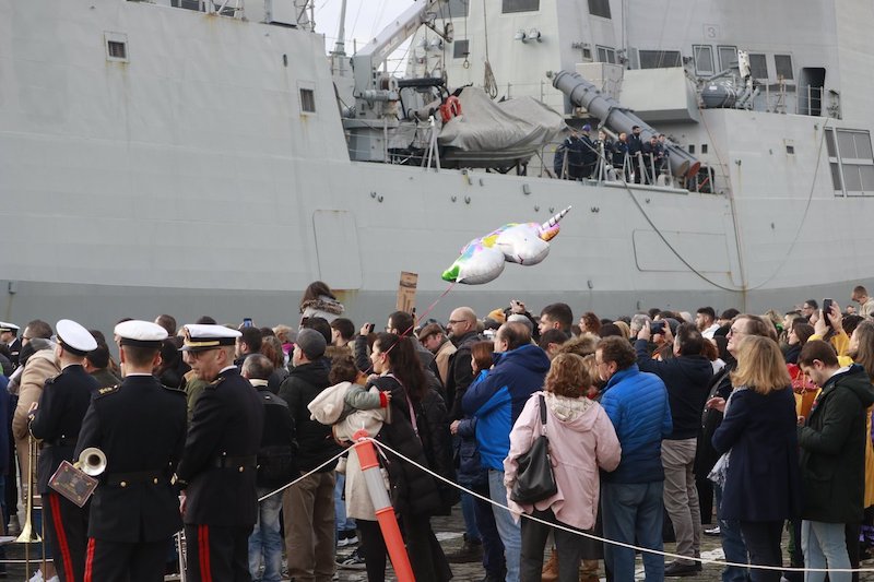 La fragata “Méndez Núñez” –comandante, CF David Díaz-Caneja Greciano– ha sido recibida con gran entusiasmo a su regreso este viernes 22 de diciembre, a su base en el Arsenal de Ferrol, tras un despliegue de cuatro meses con la Agrupación Permanente de la OTAN nº 2 en el Mediterráneo, formando parte de la misión Noble Shield, informa la Armada. El objetivo esencial de la misión ha sido la disuasión de las unidades rusas en el Mediterráneo oriental, principalmente.