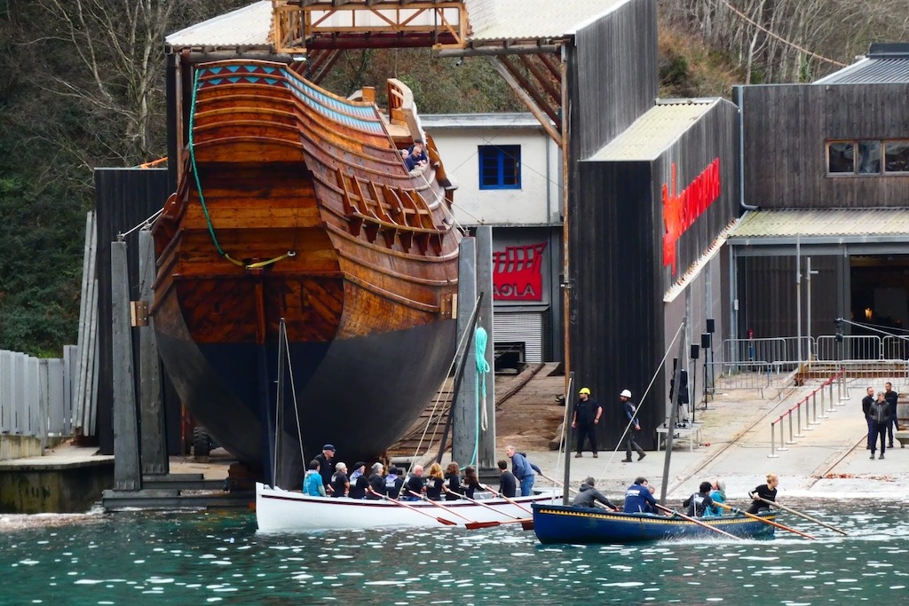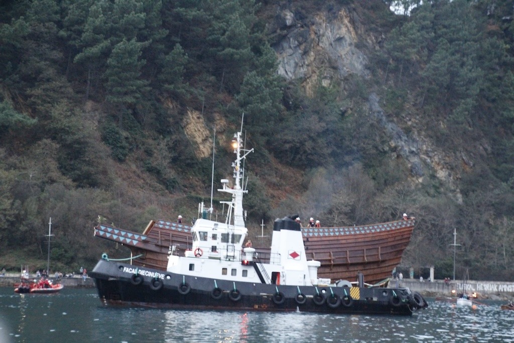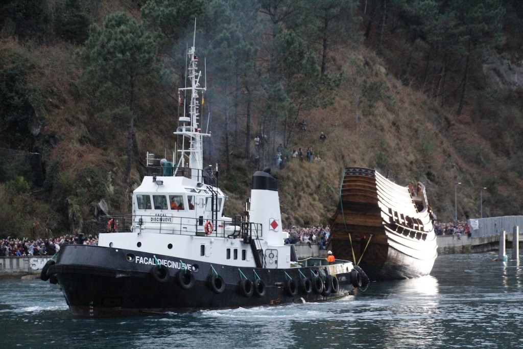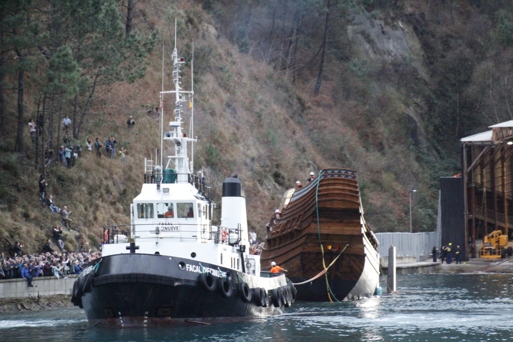Con un lastre de 50 toneladas de piedras, el casco de la nao “San Juan” “ha descendido por la rampa entre irrintzis y sonidos de alboka”, escribe Álex Zurbiría en la edición digital de noticiasdenavarra.com. En la maniobra tras su botadura ha sido auxiliado por el remolcador “Facal Diecinueve”, que lo ha remolcado a uno de los muelles de armamento de Astilleros Zamakona.
