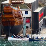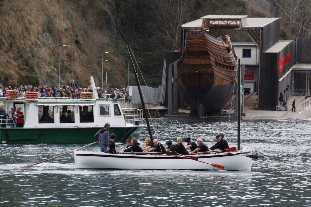 Varios miles de personas se han dado cita esta tarde a las orillas de la bahía de Pasaia para presenciar la botadura de la nao “San Juan”, convertida en uno de los grandes acontecimientos de los últimos años en las tierras de Gipuzkoa. La maniobra ha sido lenta en su deslizamiento por la grada del astillero de Albaola Itsas Kultur Faktoria con el madrinazgo de Caroline Marchand y una botella de sidra vasca.