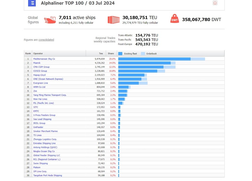 Según un informe actualizado de la empresa de investigación y análisis Alphaliner, el armador suizo controla actualmente el 20% de toda la capacidad de bodega disponible en el mundo, con casi seis millones de TEU sobre poco más de un total de 30 millones de TEU, repartidos entre algo más de 7.000 buques).