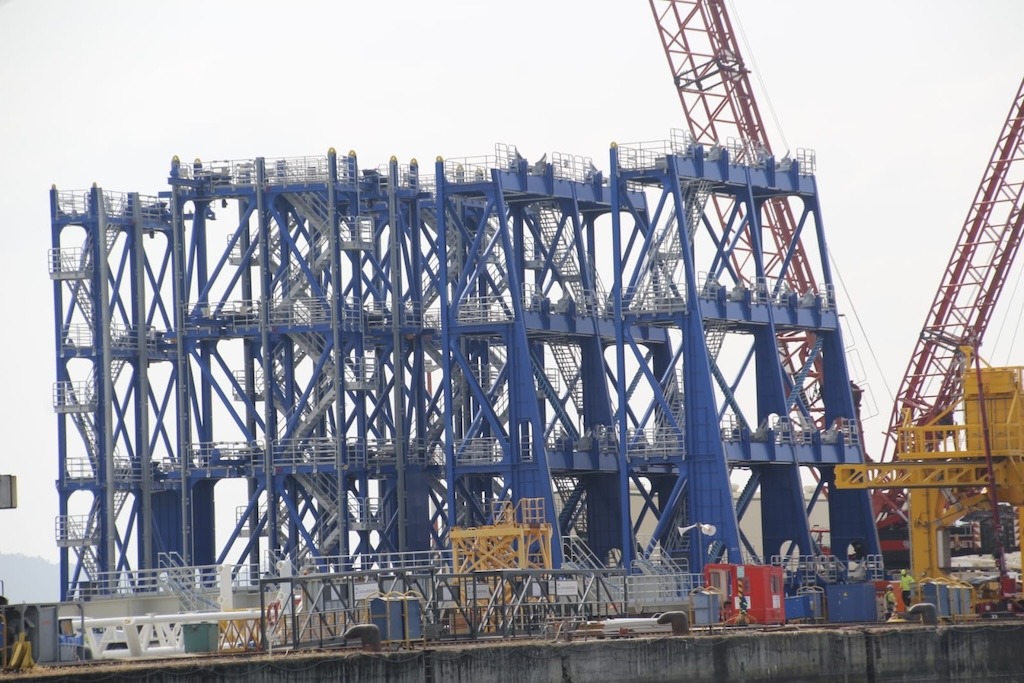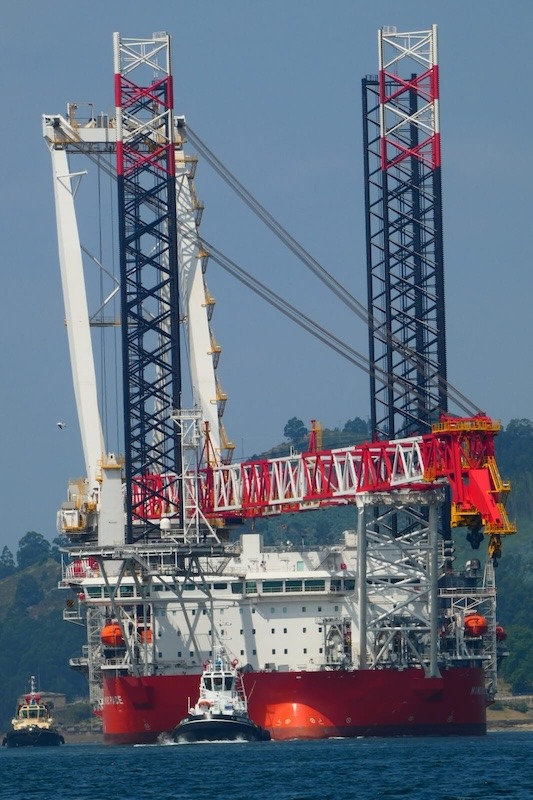 Dado que las turbinas son cada vez mayores, se precisa de unidades de mayor capacidad operativa, como es el caso, elevándose sobre sus cuatro patas y con una grúa de 1.600 toneladas de potencia de izada.
