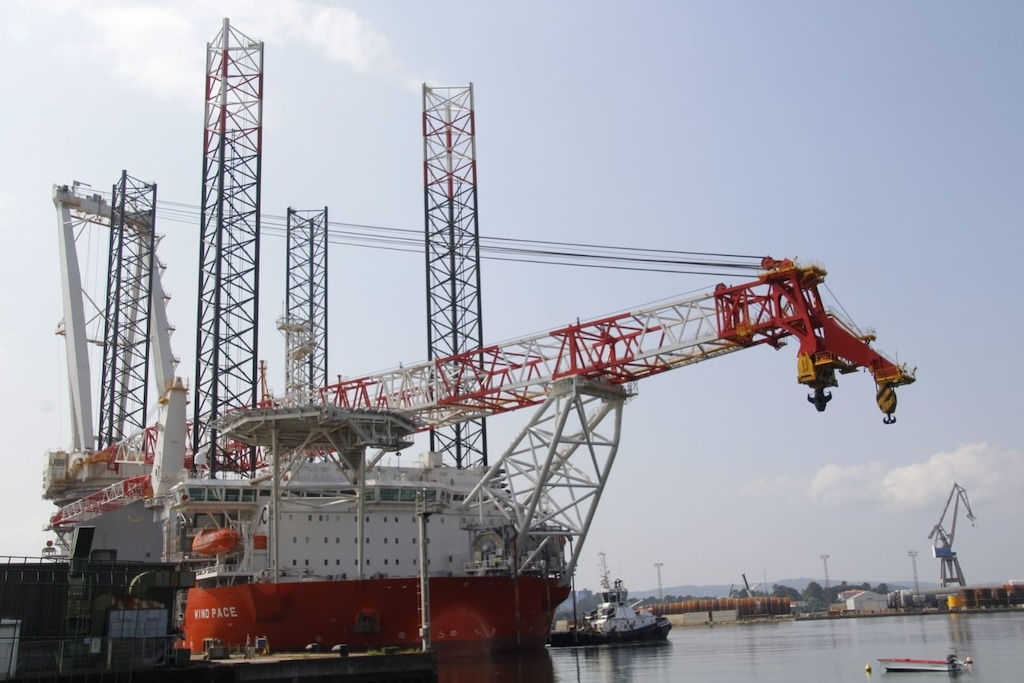 Recién llegado desde China, donde ha sido construido, y tras una escala técnica en el puerto de Las Palmas de Gran Canaria y fondeo en la ría de Ares, el buque OSV danés “Wind Pace” (IMO 9957830) se encuentra atracado en el muelle número 11 de Navantia Fene (antigua ASTANO), donde se le instalarán unas estructuras de color azul en la cubierta para la sujeción de palas eólicas, así como unos polines donde estarán apoyadas.