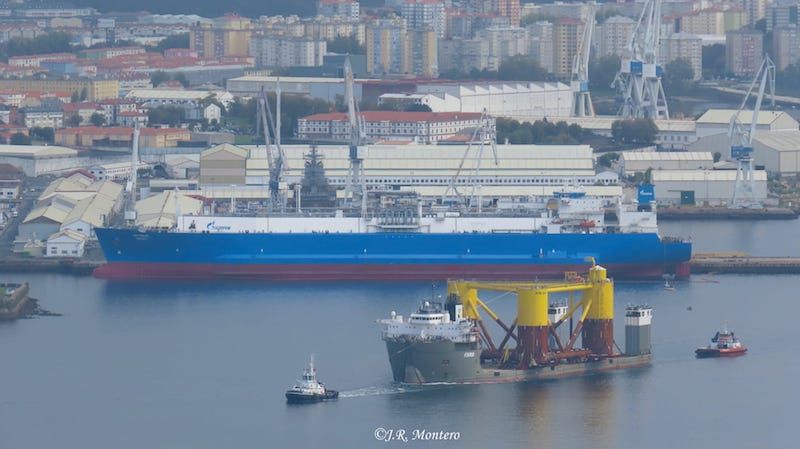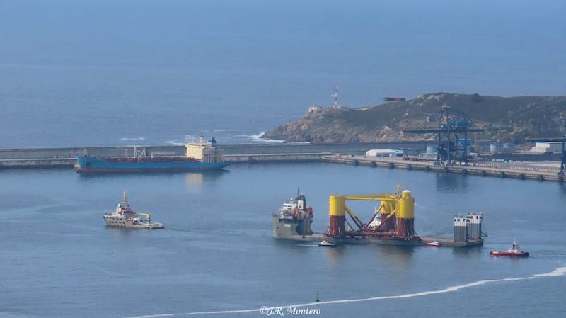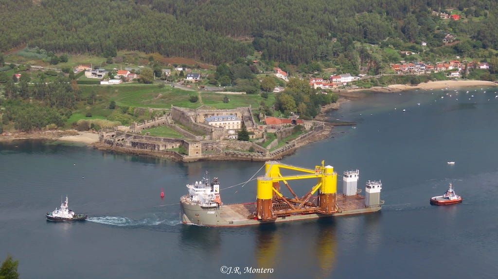 Con una semana de retraso debido al mal tiempo reinante estos días en Galicia, hoy ha zarpado del puerto de Ferrol el buque de cargas especiales “Fjord” con la primera de las tres plataformas flotantes del Programa Kincardine construidas en Navantia Fene, que serán posicionadas en Rotterdam, para su posterior emplazamiento. Después de dos horas y media de maniobra, el transporte ha zarpado a remolque del remolcador “Seraya”, pues el buque “Fjord” navega sin propulsión y con el AIS apagado. La intención es que cada quince días sea embarcada cada plataforma.