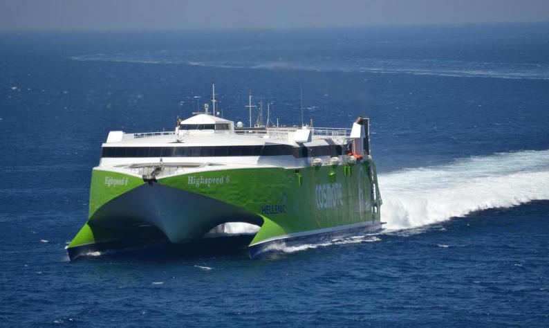 Como conocen nuestros lectores, este catamarán es el antiguo “Milenium”, que estuvo al servicio de Compañía Trasmediterránea entre 2000 y 2010, año en el que pasó a enarbolar la contraseña de la naviera griega Hellenic Seaways Maritime. Construido en el astillero InCat (Hobart, Australia), tiene capacidad para 900 pasajeros y 265 coches.