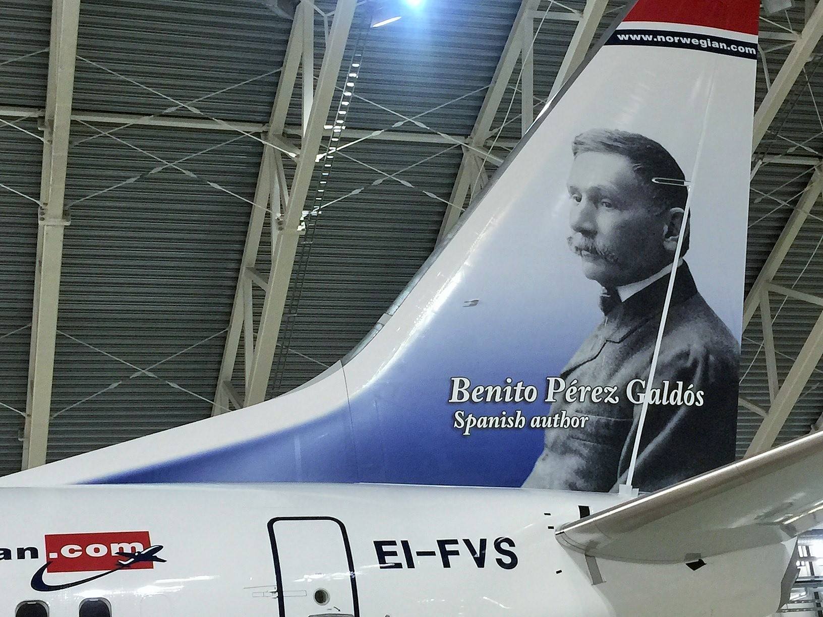 La aerolínea Norwegian dedica uno de sus nuevos aviones Boeing B-737 serie -800 (matrícula EI-FVS) a la figura del escritor grancanario Benito Pérez Galdós (1843-1920). Con éste ya son ocho las figuras de la historia, la ciencia y las artes españolas que ilustran las colas de los aviones de la compañía noruega y 87 personajes de países nórdicos, Reino Unido e Irlanda.