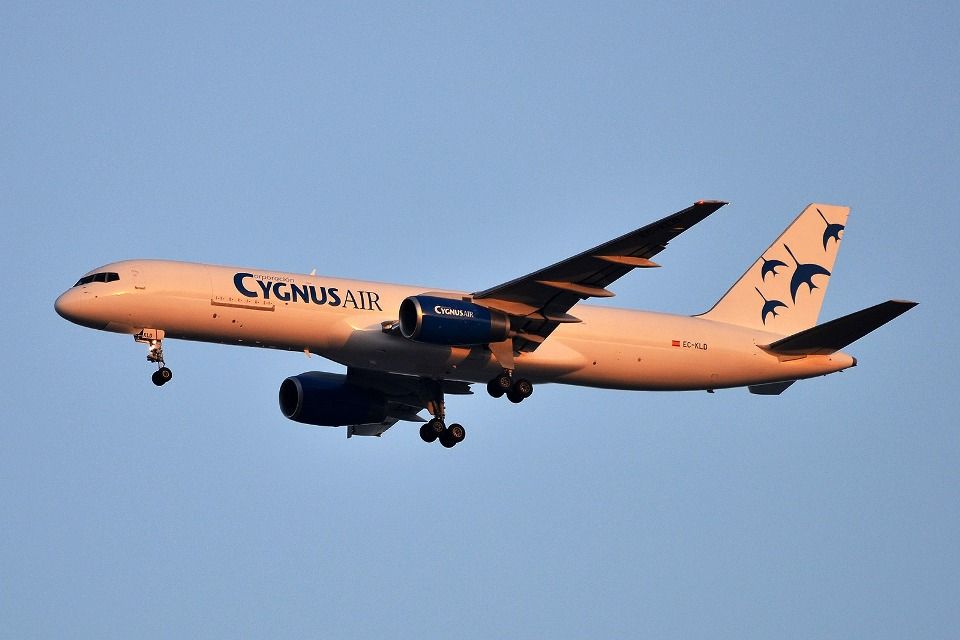 Cygnus Air estrena nueva librea en su flota, formada por dos aviones Boeing B-757-200PCF, matrículas EC-FTR y EC-KLD. Se da la circunstancia de que ambos pertenecieron a compañías españolas en sus anteriores etapas como aviones de pasajeros, el primero con Iberia (“Sierra de Guadarrama”) y el segundo con Air Europa (EC-EXH), aunque había sido estrenado por Air Europe. En la nueva imagen domina el blanco y reduce drásticamente la composición en las tonalidades de azul en la cola, que ha sido hasta ahora su elegante distinción.