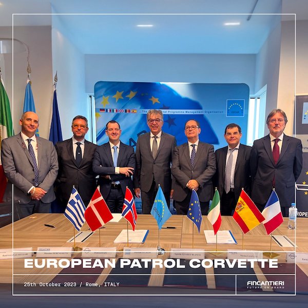OCCAR (Organización para la Cooperación en Materia de Armamento) y el consorcio formado por Naviris, Fincantieri, Naval Group, Navantia y otros beneficiarios de Grecia, Dinamarca y Noruega, han firmado ayer en Roma los documentos contractuales del proyecto MMPC (Modular and Multirole Patrol Corvette), para su implementación en la primera fase del proyecto de la Corbeta de Patrulla Europea (EPC).