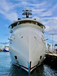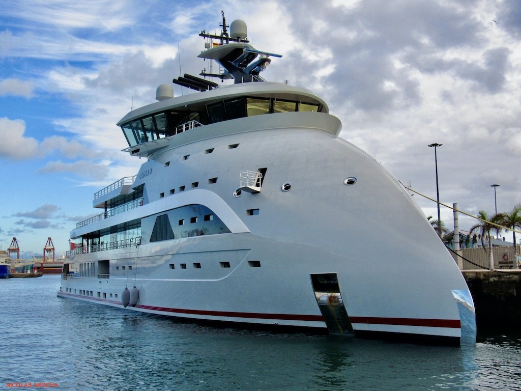 De nuevo en el puerto de Las Palmas la presencia del yate explorador de proa invertida (bow X) abanderado en Malta “Olivia O”, primero en el mundo de este tipo y cuya llamativa presencia no pasa desapercibida. La anterior escala en el puerto de la capital grancanaria, que tengamos registrada, se produjo en noviembre de 2024.