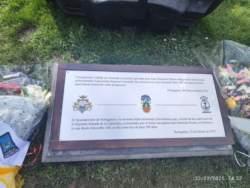 Entre los asistentes se encontraba la alcaldesa de Portugalete, María José Blanco Gavieiro; el comandante naval de Bilbao, CN Tomás García-Figueras; el subdelegado del Gobierno en Bizkaia, Carlos García Buendía y el capitán marítimo de Bilbao, Francisco García Lascurain. La iniciativa corresponde a Sabino Laucirica Villalabeitia, capitán de la Marina Mercante y autor del libro «Magallanes frente a Elcano – El juicio de la historia».