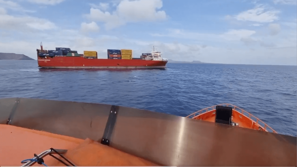 Primer incidente del buque rolón de bandera portuguesa “Canarias Express” (IMO 9331191) tras su reciente cambio de bandera y de tripulación. Según informa Salvamento Marítimo, quedó sin gobierno y la deriva a 2,4 millas de la isla de Lobos, en el estrecho de La Bocayna, en viaje a Arrecife de Lanzarote.