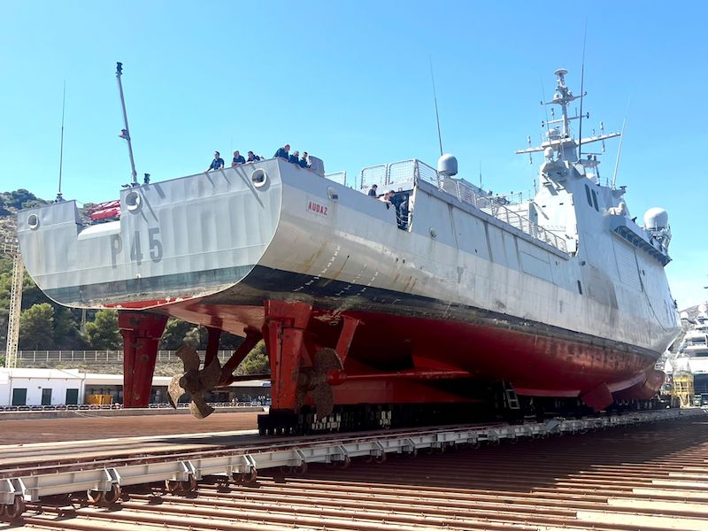 El BAM “Audaz” (P-45) ha entrado de varada en el astillero de Navantia Cartagena, por primera vez desde su entrega en julio de 2018. En las próximas semanas hay programados una serie de trabajos de mantenimiento, para mantener el buque en plena capacidad operativa, informa la Armada en su cuenta de twitter.