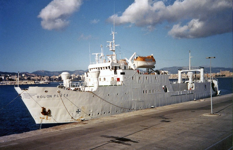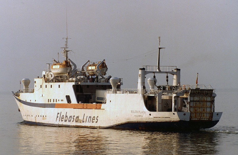 Estimado Juan Carlos, otra vez vengo a saludarte con la escusa de las fechas. El 21 de Junio de 1988 embarqué de segundo oficial en el buque nombrado Rolón Plata, EDAI, embarque legalizado por la Comandancia Militar de Marína de Ibiza. Quizá Flebasa solo lo tenía fletado a casco desnudo, pero se comentaba que don Victoriano lo había comprado por esas fechas, además le había hecho las reformas necesarias para llevar unos 300 pasajeros, no creo que don Victoriano gastara dinero si no hubiera tenido la propiedad en 1988. Embarqué de rebote y sin alguna intención de hacerlo. Me encontraba en mi velero «Aquavit» fondeado a un muerto en la bahía de San Antonio, cuando me vino a buscar el delegado de la compañía Flebasa, me ofrecio embarcar y pidiéndolo por favor debido a la urgencia. Embarqué los 25 días que le prometí. En 1994 embarqué una semana de capitán en la linea Alcudia Ciudadela en dicho rolón. Normalmente combinaba las navegaciones de altura con las de cabotaje, sobre todo en verano. Un hecho a destacar a la hora de la maniobra del Rolón Plata era su exajerada caida a babor de la popa cuando se daba a tras, cosa que ayudaba tremendamente a la hora de atracar en paralelo y babor al muelle, ayudado por su escasa hélice de proa. Lo malo era que al revirar, todo lo que se ganaba avante se perdía dando atrás, recuperando un poco con esa debil hélice de proa. El capitán Vicente LLorca conocía bien el barco y siempre fué muy generoso a la hora de enseñar maniobras a los futuros mandos del buque. Se aprendía mucho en esas compañías en relacíon a maniobras de buque, se atracaba a puertos donde no había servicio de practicaje, aunque en la cuestión monetaria había que emigrar a compañías extranjeras, lo mejor era combinar, pero nunca más de tres meses al año en compañías de cabotaje. Gracias Juan Carlos, y perdona que use cualquier excusa para comunicar contigo que tanto te admiro a la hora de escribir.