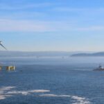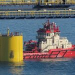A las 13 h de hoy comenzó la maniobra de remolque del segundo “windfloat” del proyecto Windfloat Atlantic situado en la costa de Viana do Castelo, Portugal, desde el puerto exterior de Ferrol, primero con la ayuda de los remolcadores con base de operaciones en el puerto ferrolano y dos horas después se hizo cargo el remolcador “BB Power”, que fue alargando el remolque, de modo que a una milla aproximada del dique de abrigo llevaba ya unos 300 m.