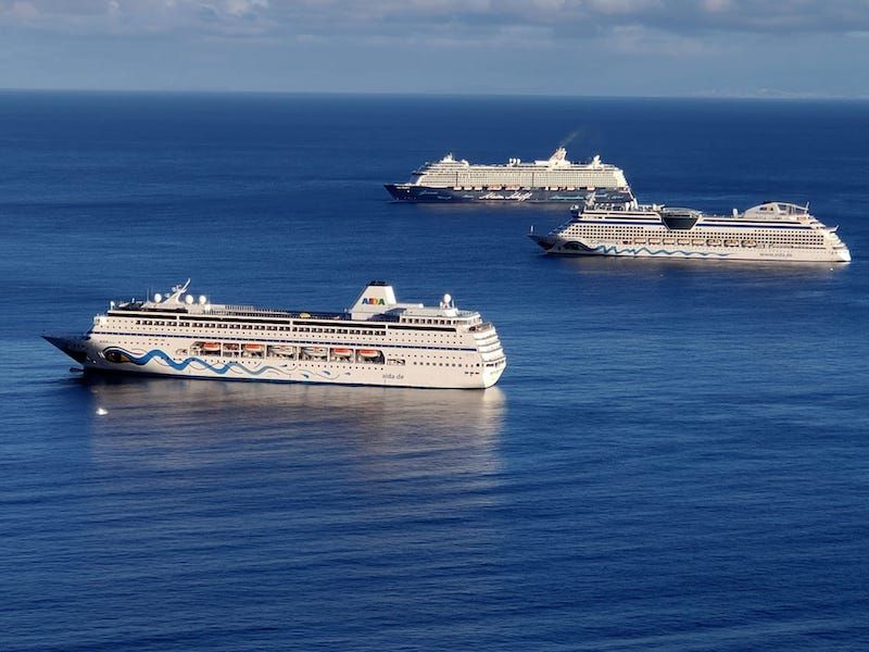 Junto a los cinco buques de Aida Cruises (“AIDAperla”, “AIDAnova”, “AIDAmar”, “AIDAmira” y “AIDAluna”), se encuentran dos de Tui Cruises GmbH (“Mein Schiff Herz” y “Mein Schiff 3”) y a ellos se ha sumado este fin de semana el buque “Europa 2” (Hapag-Lloyd). Se da la circunstancias de que los ocho buques están dedicados al turismo alemán.