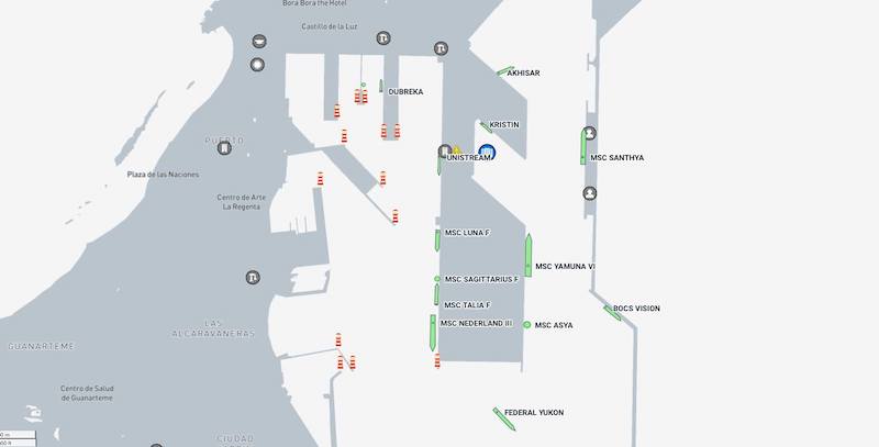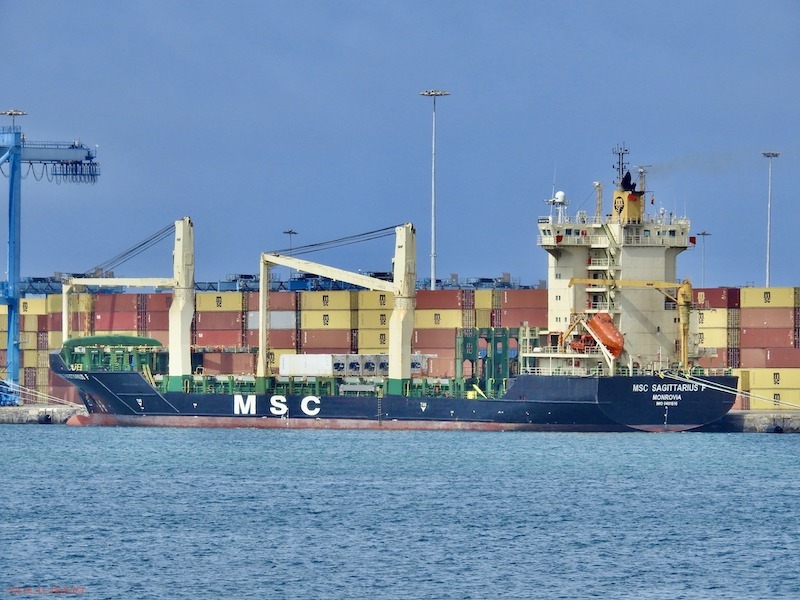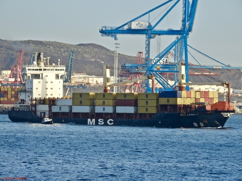 Siete buques del gigante MSC coinciden en el puerto de Las Palmas de Gran Canaria. Atracados en la terminal de OPCSA están los buques “MSC Luna F”, “MSC Sagittarius F”, “MSC Talia F”, “MSC Nederland III”, “MSC Asya” y “MSC Yamuna VI”. Todos los que tienen el sufijo F son unidades feeder. Atracado en la zona de reparaciones está el buque “MSC Santhya” y otros dos –“MSC Haiti II” y “MSC Tiana F” – esperan turno al sur de Gran Canaria.