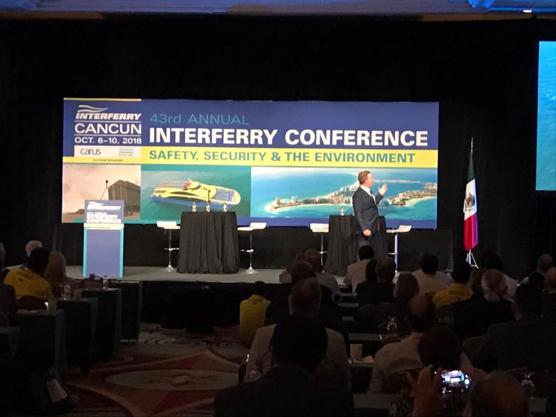 Por primera vez, Trasmediterránea y Naviera Armas están presentes como asociados en la 43ª Conferencia de Interferry, que se celebra este año en Cancún, México. Se trata de las únicas navieras españolas que acuden a este importante encuentro de rango internacional, al que asisten, en representación de ambas compañías, Antonio Armas junior y Juan Pablo Marrero, respectivamente.
