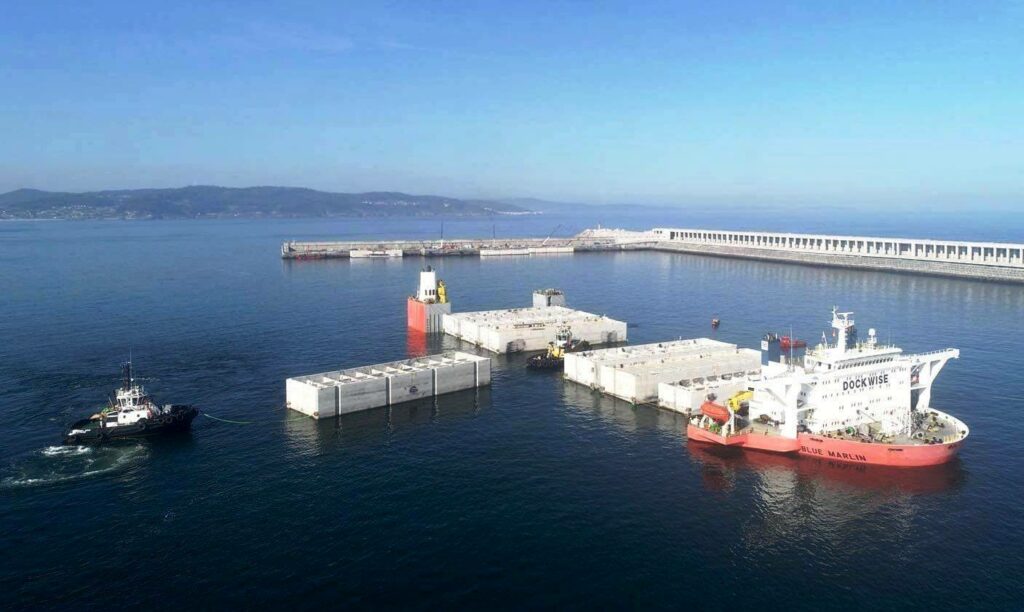 El buque semisumergible “Blue Marlin” ha finalizado las operaciones de carga del primer envío de siete cajones de hormigón armado, que han sido fabricados en Punta Langosteira, A Coruña, y formarán parte de la ampliación del puerto de Aberdeen. Según se ha informado, el citado buque se ha sumergido hasta 25 m durante la maniobra para la carga de los siete cajones, cuyos pesos oscilan entre 5.000 y 7.000 toneladas y ahora procede al deslastrado hasta alcanzar el calado que le corresponda para realizar el viaje de entrega, previsto su inicio para esta semana.
