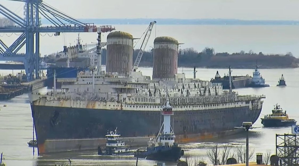 El mediático remolque del legendario trasatlántico “United States” ha llegado sin novedad al puerto de Mobile (Texas, EE.UU.) y se encuentra atracado en un muelle que no permite visitas del público. Según medios marítimos de aquel país, se estima que la preparación del buque para hundirlo como arrecife artificial llevará alrededor de un año, de modo que habrá que esperar a 2026 para presenciar el siguiente episodio, salvo que suceda algún milagro —cosa poco probable— que lo mantenga a flote.
