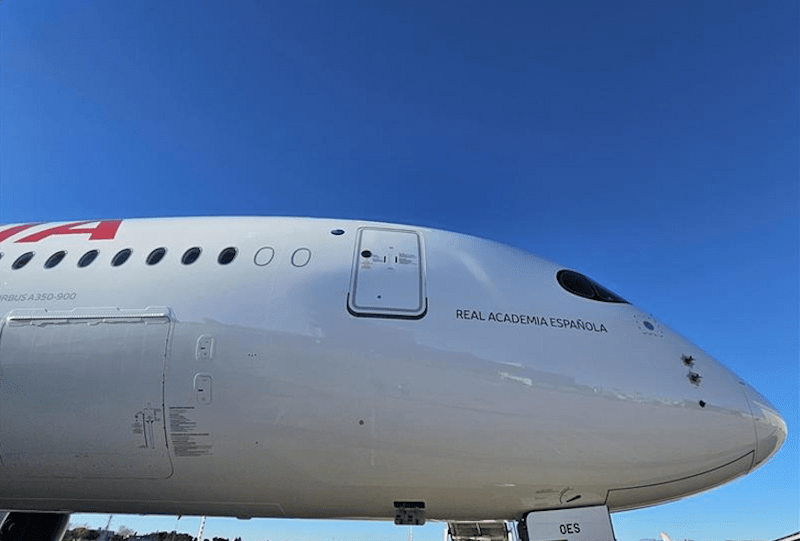 Iberia acaba de incorporar un nuevo avión a su flota, un A350 Next de nueva generación, matrícula EC-OES, que ha sido bautizado con el nombre de “Real Academia Española”.