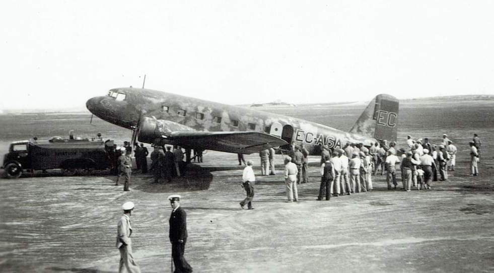 El admirado amigo y maestro de periodistas Vicente Talon Ortiz publica en su muro de Facebook esta foto del avión Douglas DC-2 matrícula EC-AGA, fotografiado el 12 de noviembre de 1938 en el aeródromo de Hal Far, en Malta, cuando iba camino de Ankara con una representación oficial del Gobierno republicano presidida por el ministro Giner de los Ríos, para asistir al funeral de estado del presidente y fundador de la moderna Turquía, Mustafá Kemal Atartük.