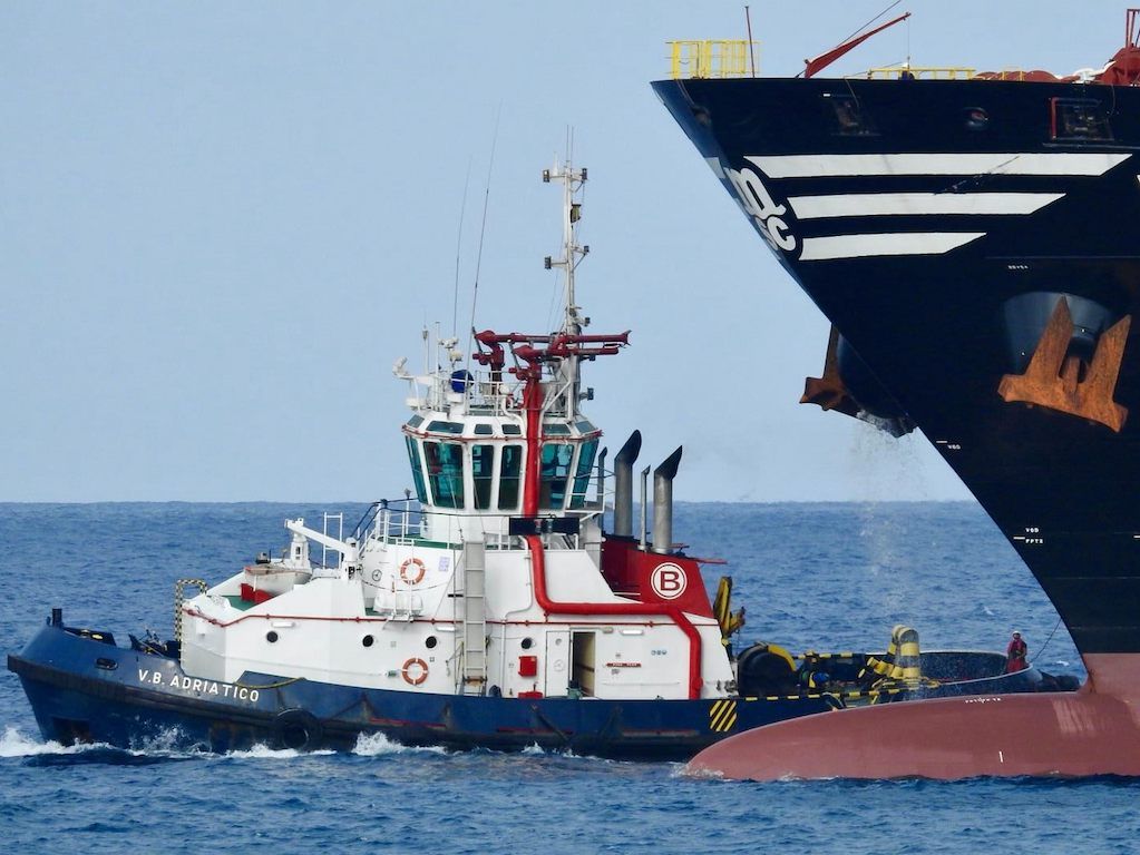 Viendo que dos remolcadores de Boluda estaban atendiendo otra maniobra y el cuarto se encontraba en el puerto de Salinetas, el práctico pidió el servicio urgente de tres remolcadores de Odiel Towage –“Fairplay Tamadaba”, “Fairplay Bandama” y “Fairplay Bentayga”–, que se hicieron firmes en la maniobra como medida de precaución, cuando ya estaba fuera de peligro, correspondiendo el control de la operación al remolcador “VB Adriático”.