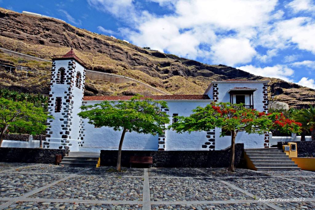 Cinco siglos de historia encierran las paredes del santuario de Nuestra Señora de las Angustias, situado en el margen derecho del barranco de su mismo nombre, en el borde de la salida natural de la majestuosa Caldera de Taburiente. Antaño este cauce fue conocido también como barranco de Tazacorte o del Río, porque entonces el agua corría con mucha frecuencia y era algo consustancial a la propia existencia de la comarca. El origen de esta iglesia, considerada uno de los referentes religiosos de la isla, se remonta a los primeros años después de la conquista. Se edificó justo en el lado opuesto al emplazamiento donde se encontraba la antigua iglesia de Santa María, en los terrenos que hoy ocupa parte de la finca de su mismo nombre.