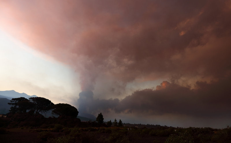 Durante el día de ayer, la emisión de dióxido de azufre (SO2) asociado al penacho se mantuvo elevada, pero en ligero descenso. La altura medida hoy de la columna eruptiva es de 4.000 m.